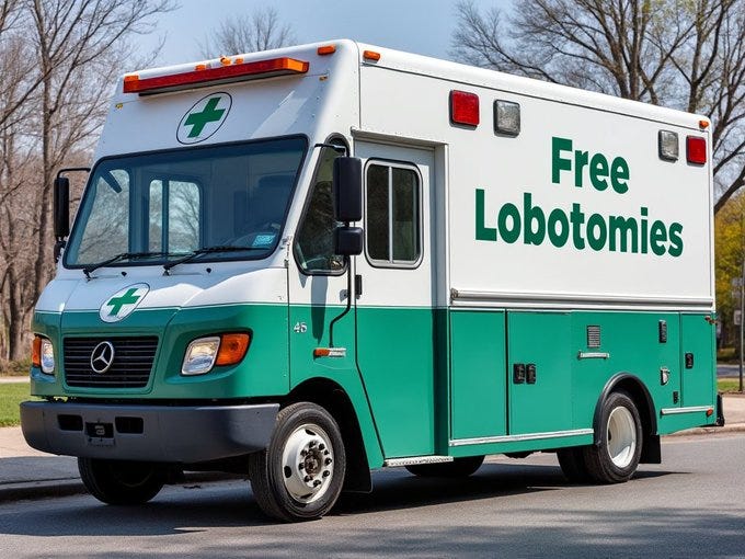 And outside the convention they have set up mobile units, offering free vasectomies, free abortions…and…