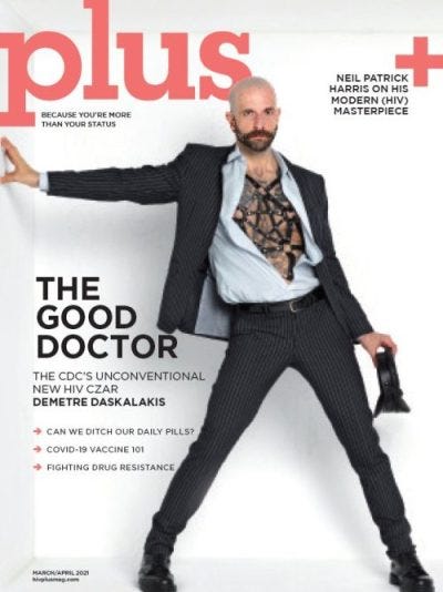 His AIDS/HIV eradication plan goes focuses on combating systemic racism, sexism, homophobia, and transphobia. Daskalakis is frequently seen wearing occult symbols, such as a pentagram harness on the cover of Plus magazine, and his social media is filled with images of tattoos like an inverted pentagram and a design mocking Christ.